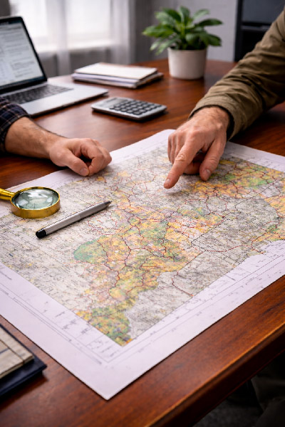 Our Map Exploration service is the foundation of every successful claim acquisition. Before any ground is staked or offered, we conduct detailed, desk-based analysis to identify areas with genuine mineral potential and clear land status.